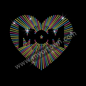 Custom Colorful MOM Korean Neon rhinestud Material Iron-on transfer applique Design Wholesale Design for t shirt for t shirt wholesale rhinestone heat transfers, Wholesale 30pcs/lot