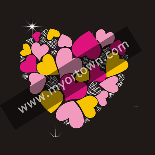 Fashion love Heart Rhinestone PU Printing T-shirt Heat Transfer
