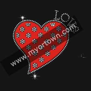 Fashion love Heart rhinestone&glitter Heat Transfer for t-shirt 30pcs