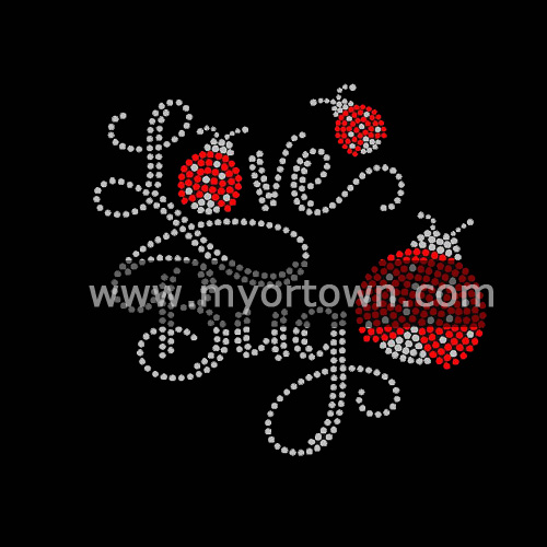 Love Bug Valentine's Rhinestone Transfer Iron On Hot Fix for t shirt wholesale rhinestone heat transfers, Wholesale 30pcs/lot