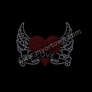 LOVE Inside Winged Heart - Rhinestone Transfer with t-shirt,high quality rhinestones by MYORTOWN Heat Transfer Iron On Motif Wholesale rhinestone heat transfers, Wholesale 30pcs/lot
