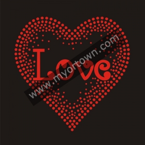 Custom Love letter heart Iron-on Glitter Rhinestone Transfer for T shirt wholesale price