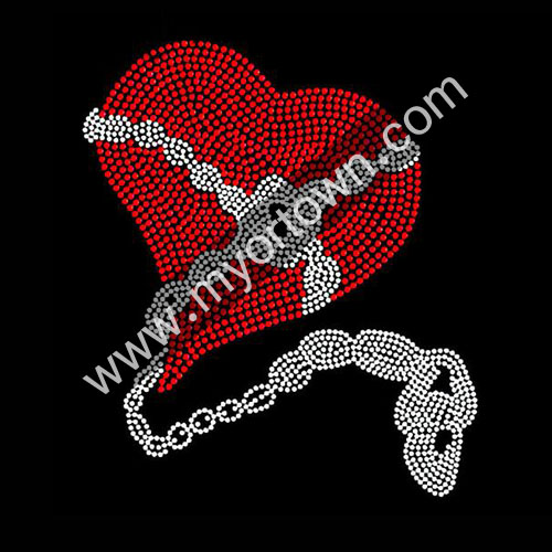 Love Red Heart Iron on Rhinestone Transfer for mask, Wholesale 30pcs/lot