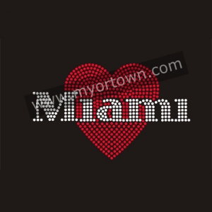 Miami Heart Rhinestone Transfer Wholesale Design for t shirt for t shirt wholesale Glitter heat transfers, Wholesale 30pcs/lot