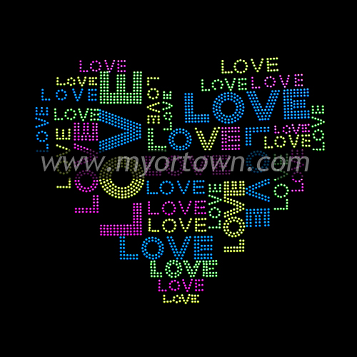 NEON LOVE HEART Hot Fix Rinestone Transfers For Tshirts Iron On Transfer Wholesale 30 pcs/lot