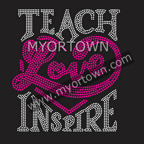 Teach Love Inspier Iron on Hot Fix Rhinestone Heat Transfers Wholesale
