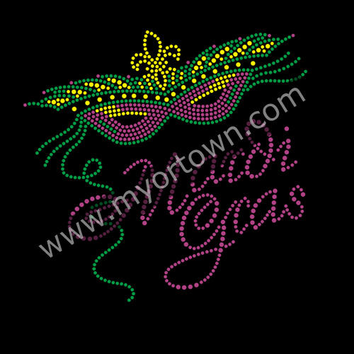 Custom Mardi Gras Korean rhinestone Material Iron-on transfer applique Design Wholesale Design for t shirt for t shirt wholesale rhinestone heat transfers, Wholesale 30pcs/lot