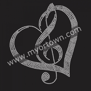 musical note heart Rhinestone Rhinestud Transfer,We guarantee Highest Quality Machine Cut 100% Clear Crystal Rhinestones in all of our Rhinestone transfer designs. Print on T-shirts, Tank Tops, Hoodies, Tote bags, Hats, Caps and Fabric etc.