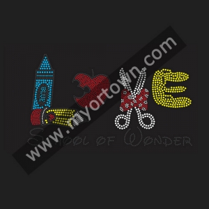 Whloesale School of wonder design rhinestone Transfer design DIY Iron-On Hotfix Bling for T shirt wholesale price