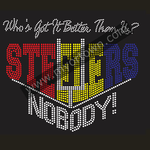 Steelers Nobody Iron on rhinestone Transfer ,We guarantee Highest Quality Machine Cut 100% Clear Crystal Rhinestones in all of our Rhinestone transfer designs. Print on T-shirts, Tank Tops, Hoodies, Tote bags, Hats, Caps and Fabric etc.