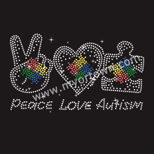 4 Design Small Heart Autism puzzle Iron on Rhinestone Transfer Decal