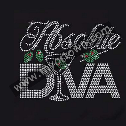 Absolute Diva Martini Glass Rhinestone heat transfer Rhinestone Transfer Iron On Motif 30pcs