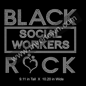 Black Social Workers Rock Iron on Rhinestone Transfer Design, Wholesale 30pcs/lot