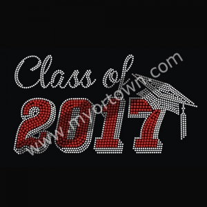 Custom Calss of 2017 Design with rhinestone and glitter Material Iron-on transfer applique Design Wholesale Design for t shirt for t shirt wholesale rhinestone heat transfers, Wholesale 30pcs/lot