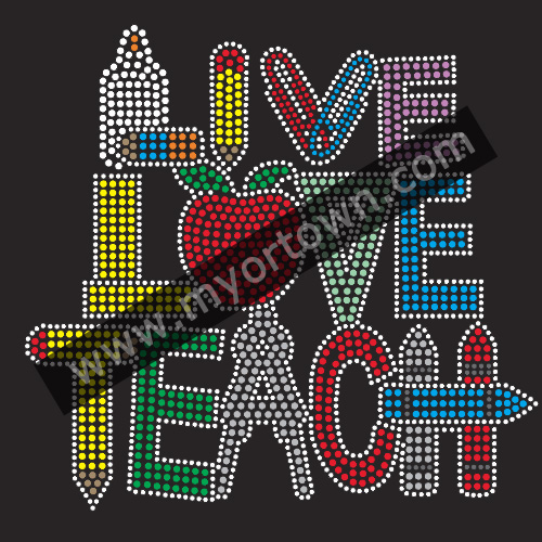 Custom LIVE LOVE TEACH Rhinestone Iron On Heat Transfer, wholesale rhinestone heat transfers, Wholesale 30pcs/lot