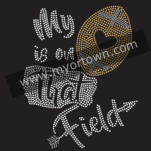 Custom My is on that field football Rhinestone Bling Transfe For T shirt wholesale heat transfers, Wholesale 30pcs/lot