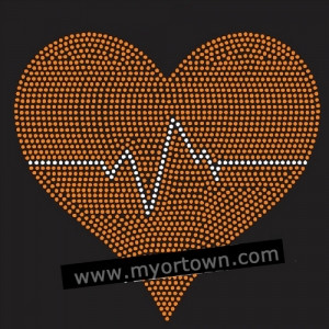 Heart basketball Iron on Rhinestone Transfer Decal