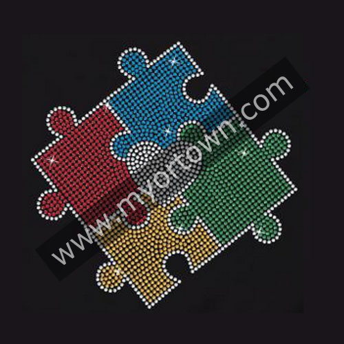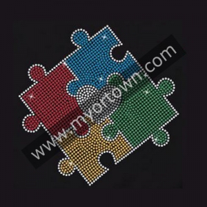 Heart Centered Puzzle Autism Piece Rhinestone Iron On Transfer Designfor Shirts 30 pcs