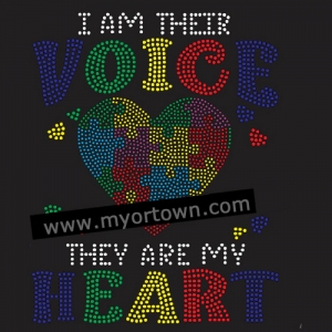 I am their Autism Awareness Voice Heart Iron on Rhinestone Transfer Decal 30pcs