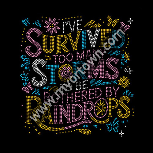 I've Survived too many storms to be bothered by Rainrops Design Bling Custom Motif Rhinestone Heat Transfer