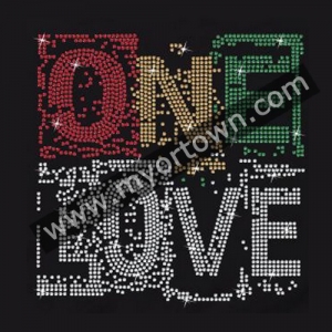 One Love Rasta Reggae Rhinestone iron on motif 30pcs