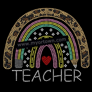 Rainbow heart Teacher Rhinestone Design Rhinestone transfer 30pcs