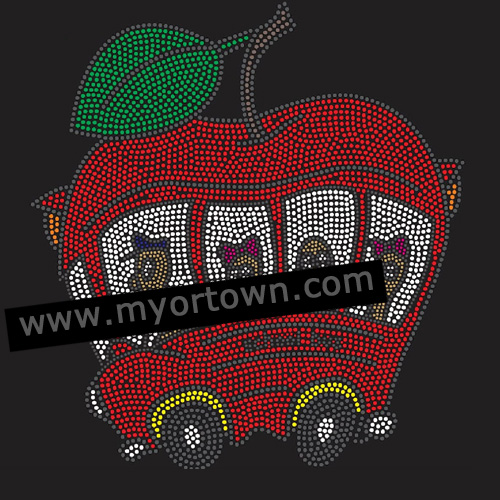 Teacher Bus Apple Rhinestone Design Rhinestone transfer