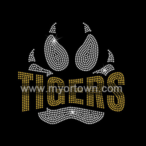 Custom Tigers Paw Hotfix Rhinestone Bling Iron on Team Spirit Wear Heat Tshirt Transfer For T-Shirt Hoodies or Garments! Be exquisite in designs and competitive in prices.