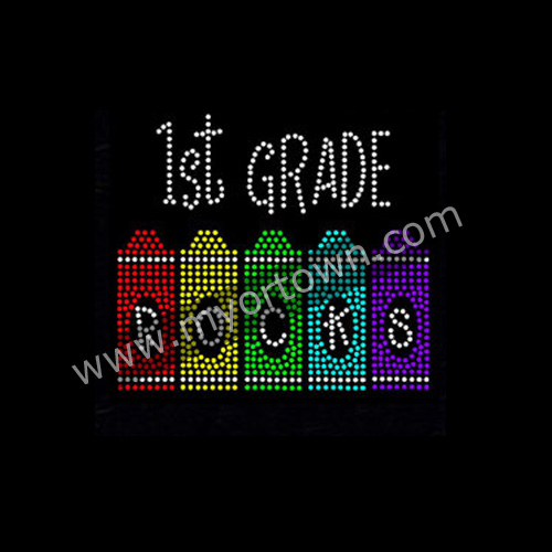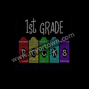1st grade rocks Rhinestone Iron On Heat Transfer, wholesale rhinestone heat transfers, Wholesale 30pcs/lot