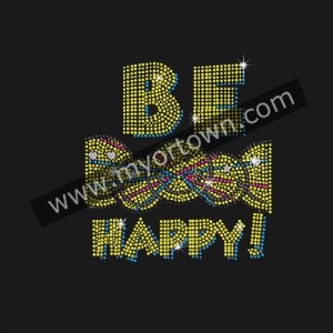 Be Happy Emoji Design Iron-on Rhinestud Transfer Design wholesale Rhinestud heat transfers, Wholesale 30pcs/lot
