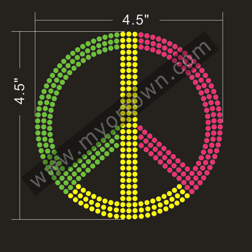 Colorful Peace Iron-on Neon rhinestud Transfer Hot Fix Bling for T shirt wholesale price