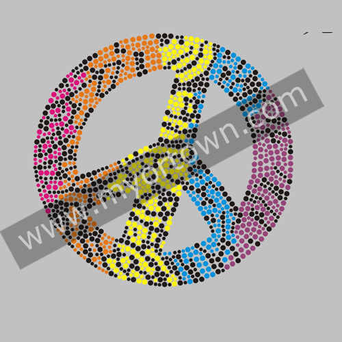 Colorful Peace motif iron on rhinestone heat transfer for T shirt wholesale price