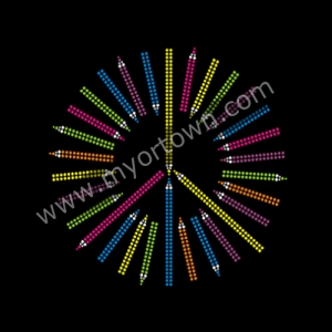 Custom Colorful Peace design Korean Neon rhinestud Material Iron-on transfer applique Design Wholesale Design for t shirt for t shirt wholesale rhinestone heat transfers, Wholesale 30pcs/lot