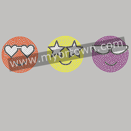 Custom Emoji design Hotfix Korean Rhinestone&Glitter Material Iron-on transfer applique Design Wholesale Design for t shirt for t shirt wholesale rhinestone heat transfers, Wholesale 30pcs/lot