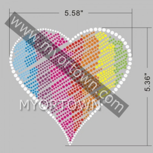 Custom Rainbow Heart motif iron on rhinestone heat transfer for T shirt wholesale price