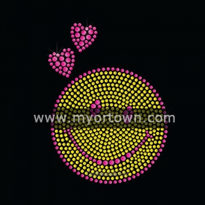 Happy EmojiIron-on Rhinestone Hotfix Transfer Design Cheap Heat Press Motifs transfer applique Design Wholesale Design for t shirt for t shirt wholesale rhinestone heat transfers, Wholesale 30pcs/lot