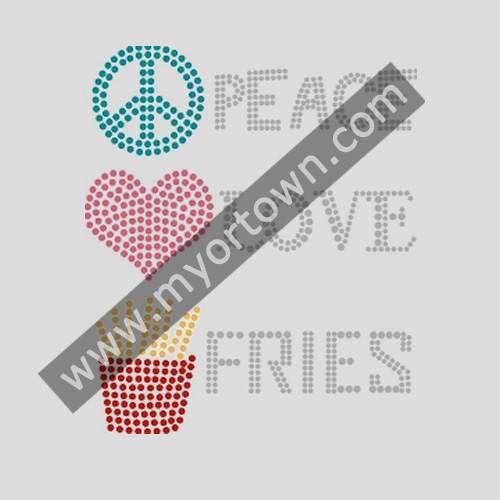 PEACE LOVE FRIES Design Design Hotfix Korean stud Material Iron-on transfer applique Design Wholesale Design for t shirt for t shirt wholesale rhinestone heat transfers, Wholesale 30pcs/lot