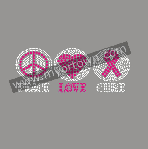 Peace.Love.Cure Rhinestone Iron On Heat Transfer Hot Fix Applique
