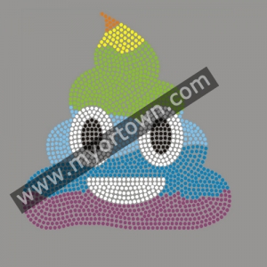 RAINBOW POOP EMOJI FACE Rhinestone Iron on Transfer Motif for Clothes 30pcs/lot