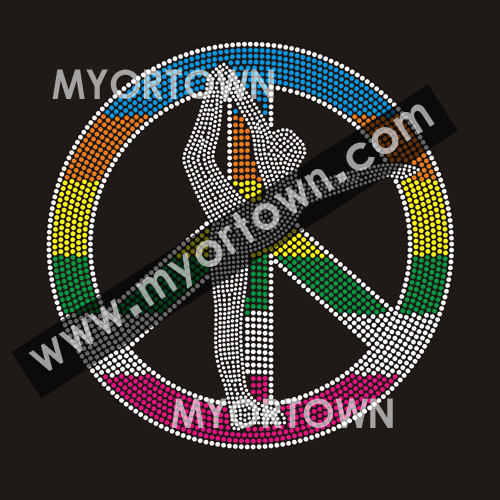 Wholesale Wholesale Cheer Peace sign designs Korean Neon Stud Transfer Iron-On Hotfix Bling for T shirt wholesale price