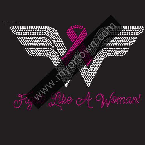 Fight like a woman Ribbon iron on Rhinestone transfer design T-Shirts wholesale rhinestone heat transfers, Wholesale 30pcs/lot