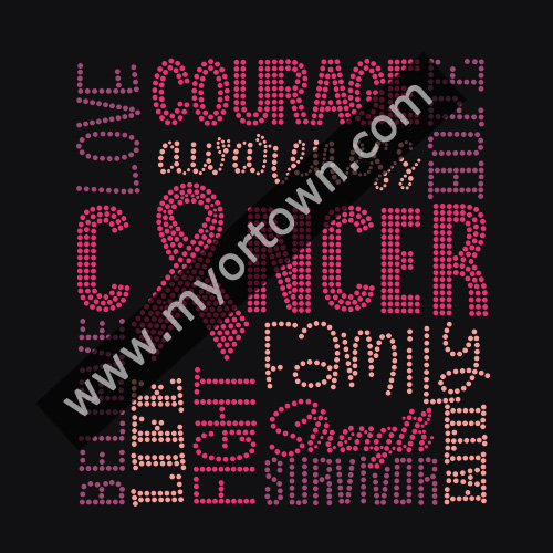 Love, Courage, Hope, Awareness, Cancer Rhinestone Iron-on Transfer Motif