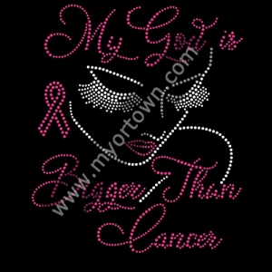 My god is Bigger than cancer Pink Ribbon hot fix Rhinestone Transfer Iron On Motif 30pcs