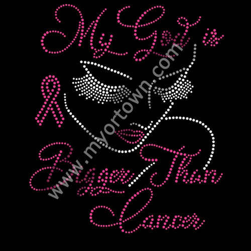 Wholesale My god is Bigger than cancer Pink Ribbon Hot Fix Rhinestone heat transfer