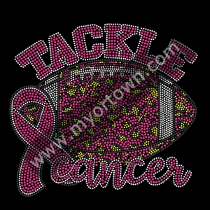 Tackle cancer Pink Ribbon hot fix Rhinestone Transfer Iron On Motif 30pcs