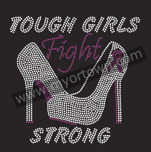 Tough girls fight Strong Ribbon Rhinestone Iron on Transfer Motif for Clothes,Iron on Rhinestone Transfer Decal