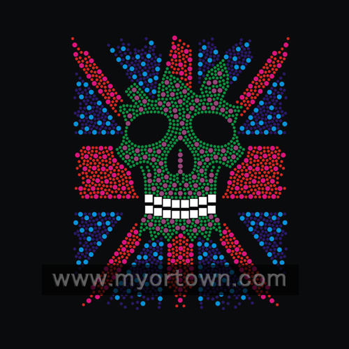 Colorful skull Rhinestone Heat Transfers Wholesale 30 pcs/lot