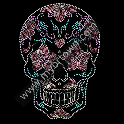 Floral Sugar Skull Iron On Hotfix rhinestud Transfer, Wholesale 30pcs/lot