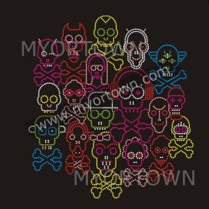 Groups Skull rhinestone heat transfers design Fix Motif Rhinestone Glitter Nailhead Appliqué Transfer Design Wholesale Design for t shirt for t shirt wholesale Glitter heat transfers, Wholesale 30pcs/lot
