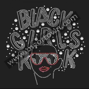 Afro Black Girls Rock Bling Iron on Rhinestone Transfer , Wholesale 30pcs/lot